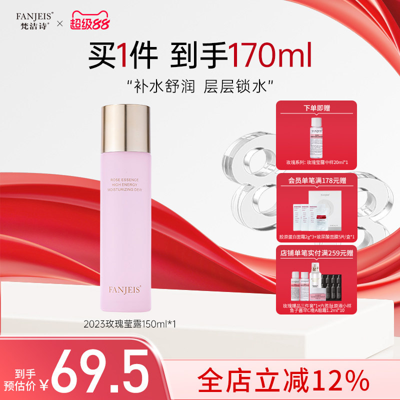 梵洁诗玫瑰保湿莹露100ML旗舰店官网正品保湿滋润爽肤水化妆品女
