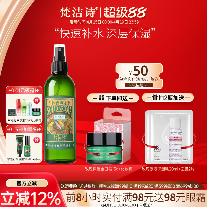 梵洁诗温泉水喷雾245ml清爽补水保湿旗舰店官网正品爽肤化妆水