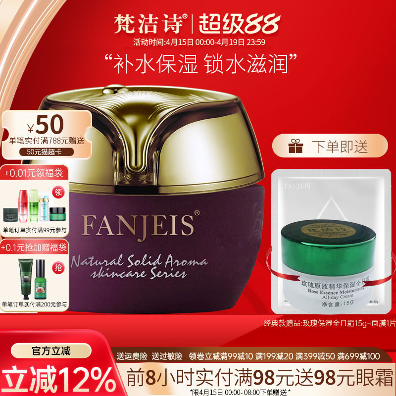 包邮正品梵洁诗玫瑰原液精华保湿全日霜50G长效补水锁水保湿面霜