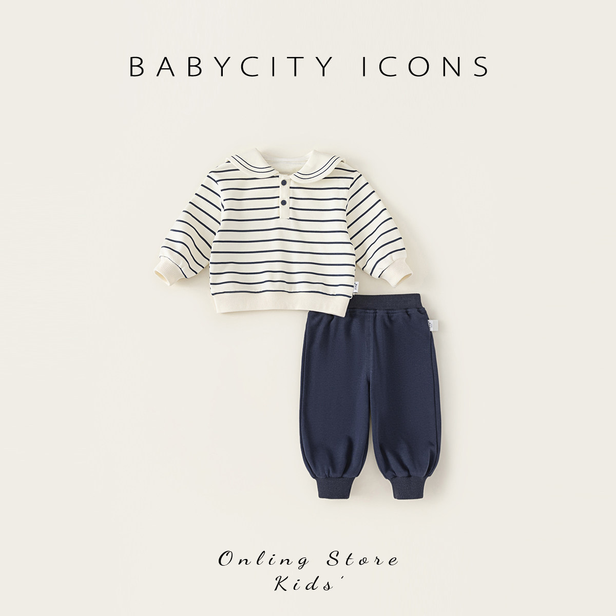 宝宝春装婴儿衣服男宝卫衣套装女童春秋学院风童装男童海军两件套