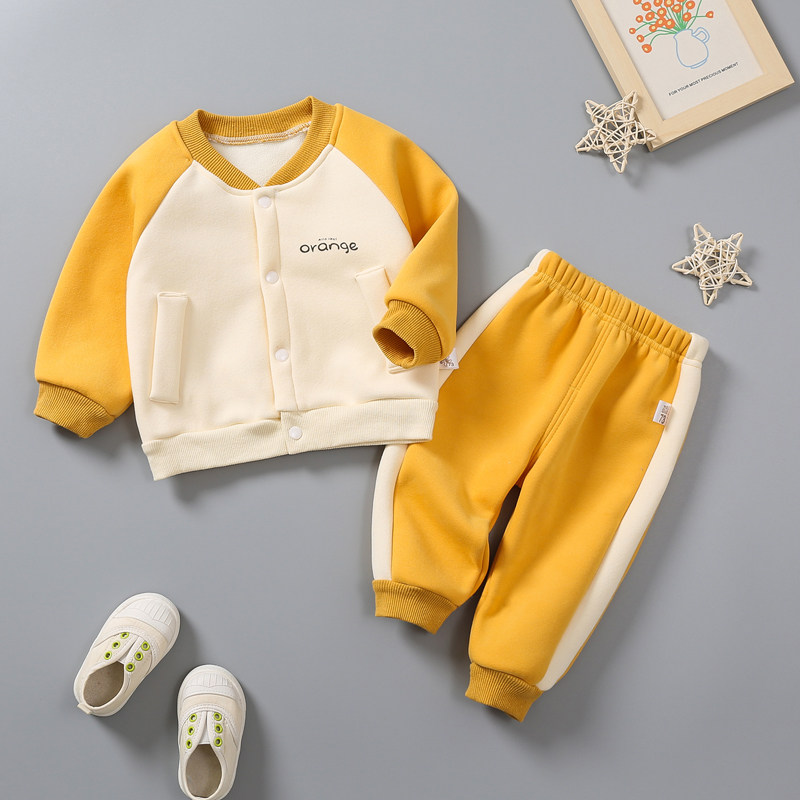 婴儿春装套装2023新款男童卫衣加绒衣服男女童秋冬外套洋气两件套
