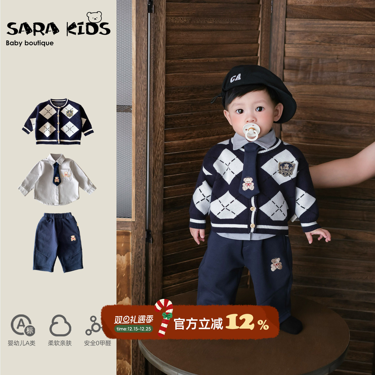 婴儿秋冬套装男宝宝衣服男孩毛衣开衫裤子春装小月龄外出服三件套