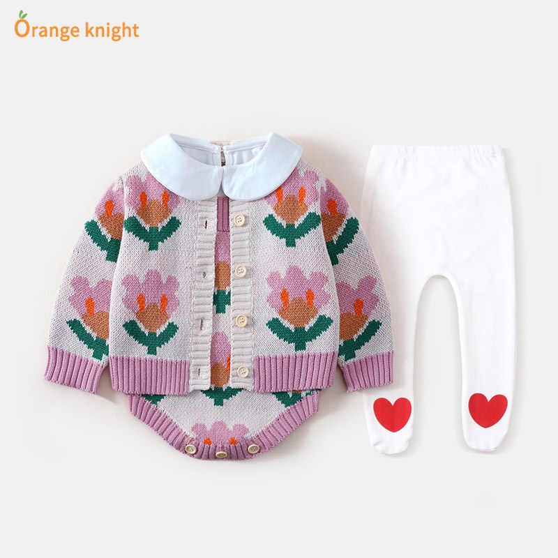 婴儿春装套装女宝宝连体衣春秋满月公主衣服秋冬季哈衣针织包屁衣