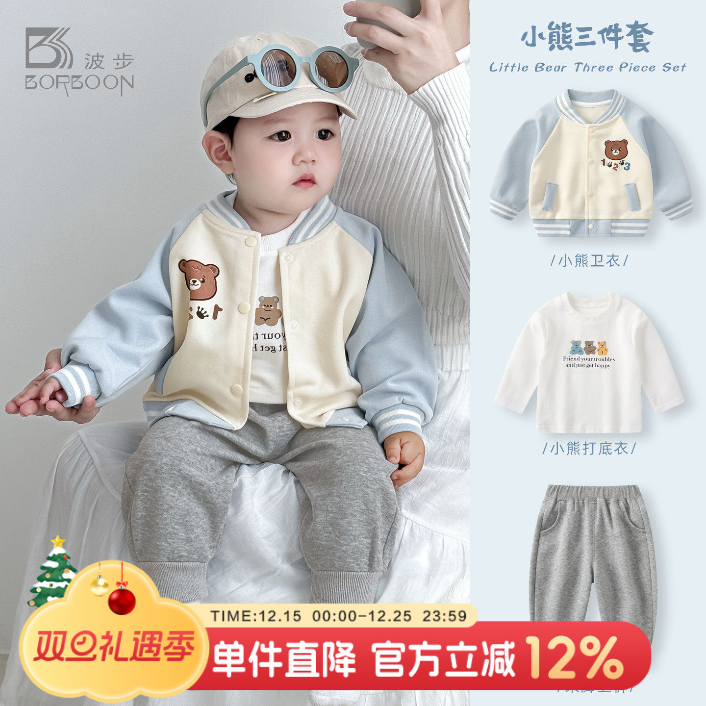 婴儿套装男宝宝春装三件套男童棒球服休闲卫衣儿童春秋款外套衣服