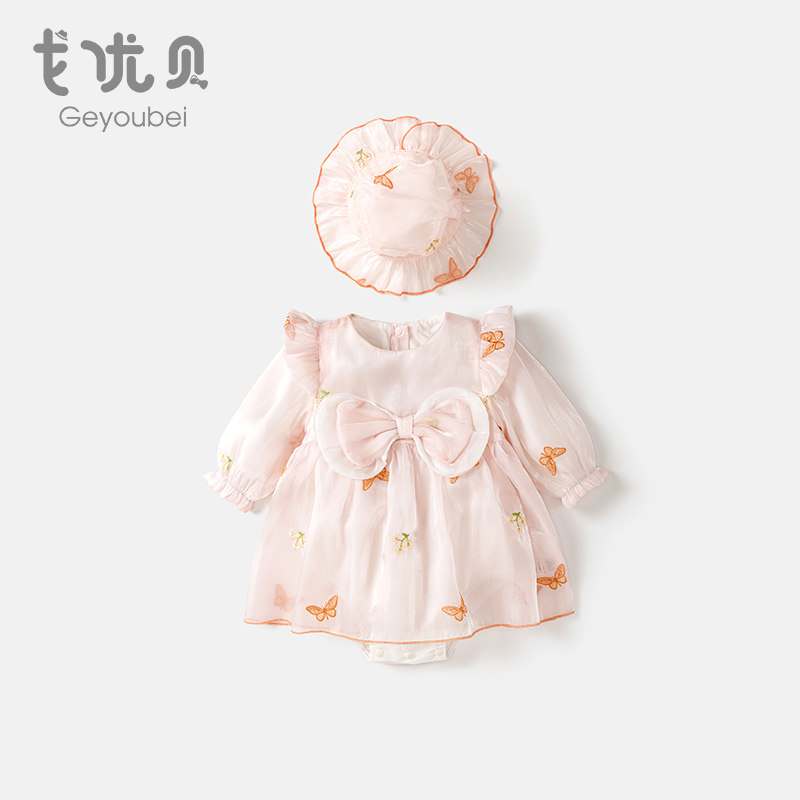 婴儿春装套装女宝宝春秋薄款连体衣满月衣服新生的儿拍照周岁礼服