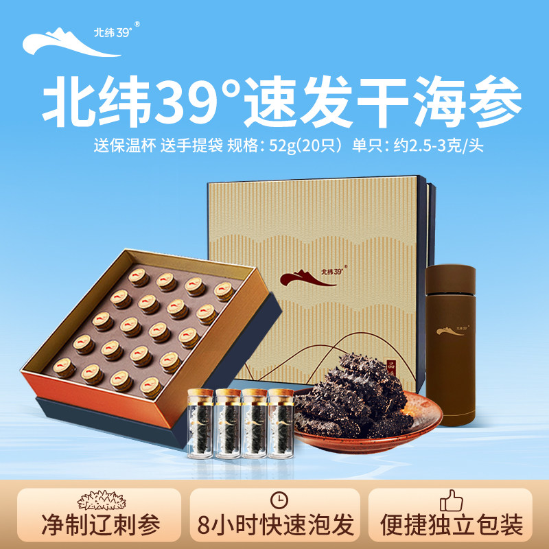 【过节送礼】獐子岛北纬39°速发海参干货52g/20只大连淡干辽刺参
