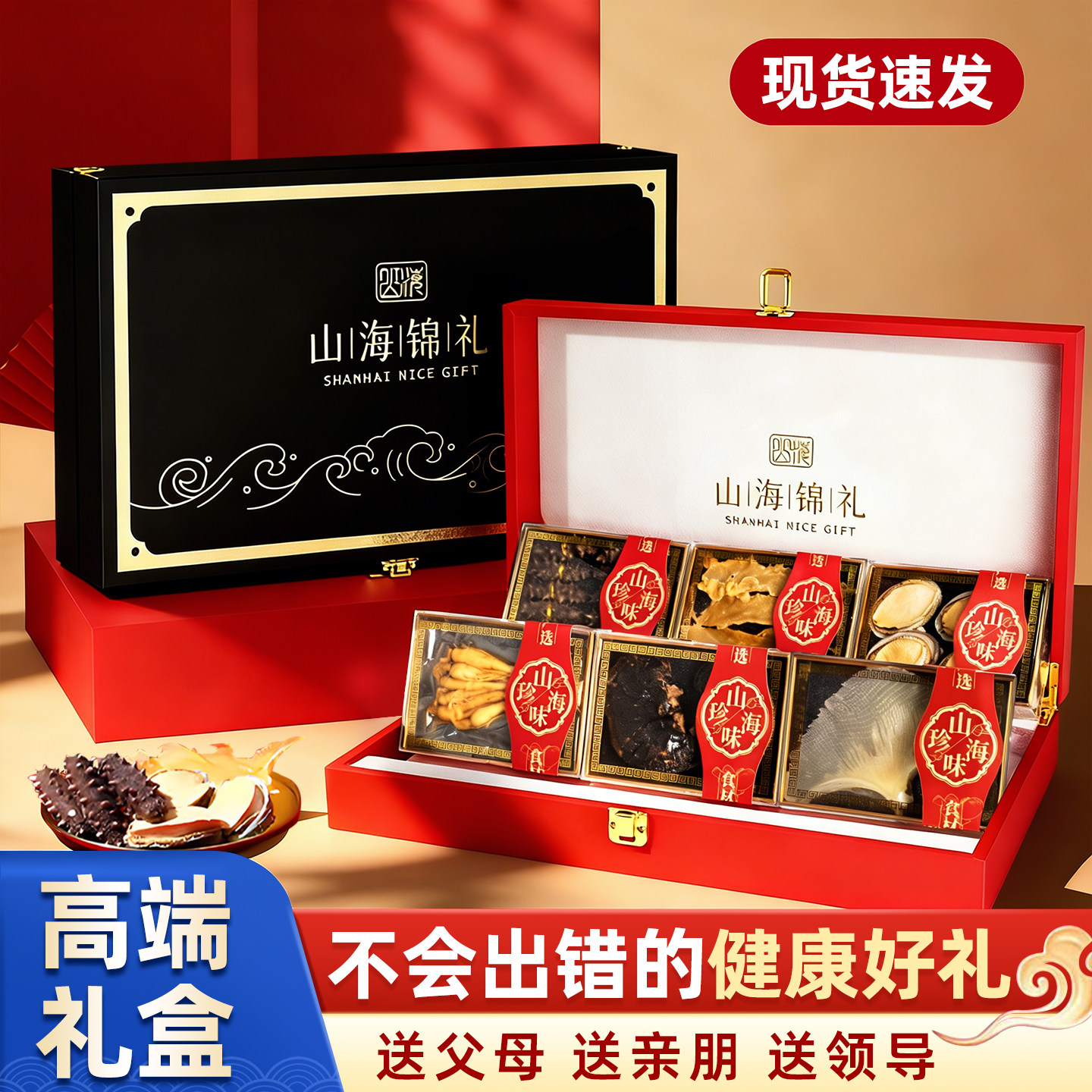 【高档】双拼海参鲍鱼礼盒淡干大连过年过节送礼海鲜干货顺丰包邮
