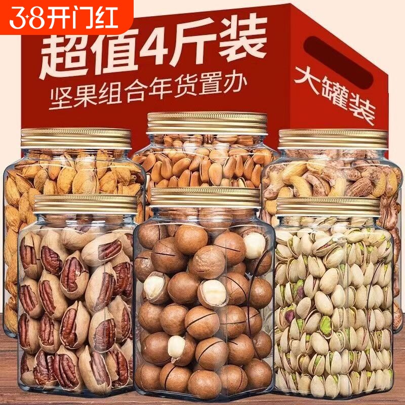 纯干果年货坚果礼盒4斤零食大礼包夏威夷果开心果送礼过年大罐装