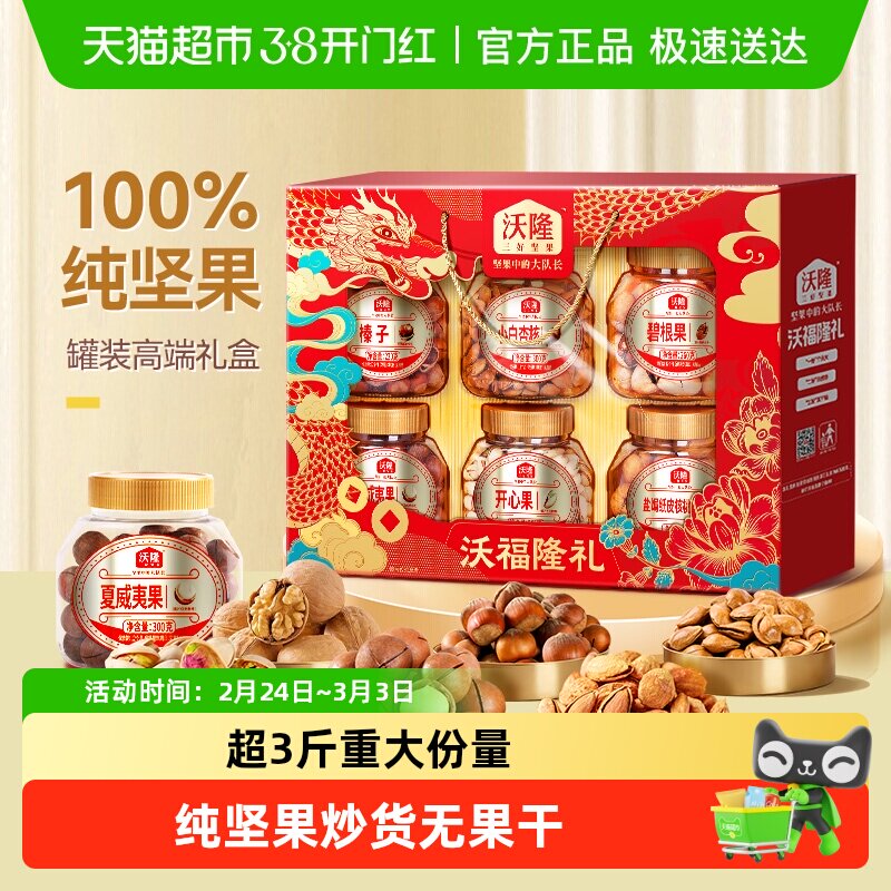 沃隆坚果礼盒八方来财1.48kg罐装过年送礼纯坚果零食年货高档礼盒