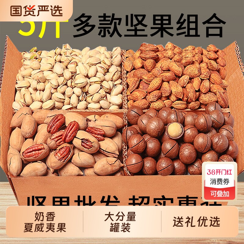年货纯坚果干果组合礼盒零食5斤大礼包送礼长辈散装批发坚果礼盒