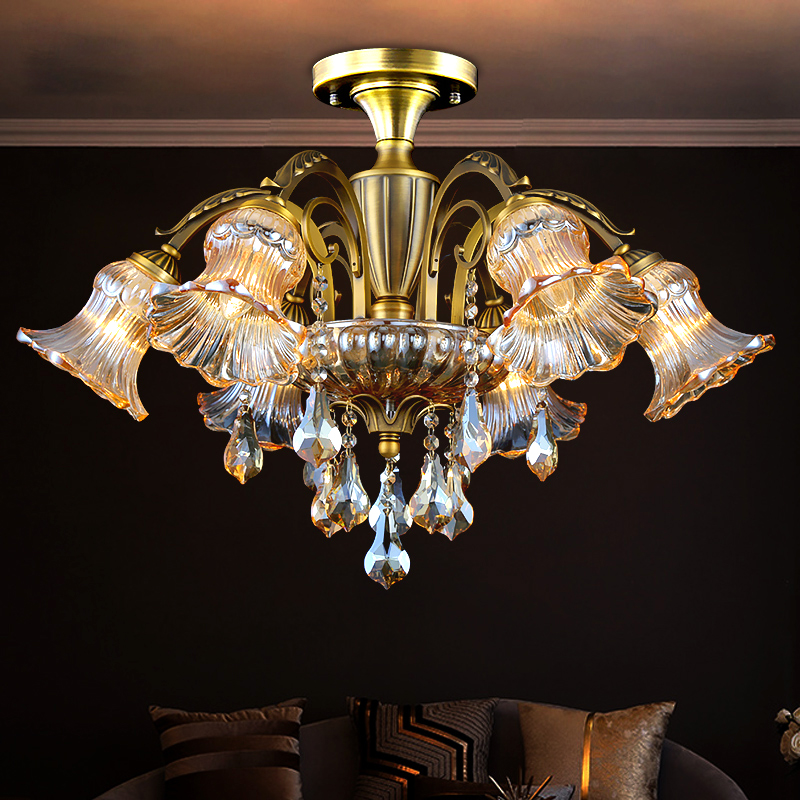 澳米欧式铜灯 全铜吊灯 美式客厅卧室水晶灯具 仿古纯铜吊灯饰
