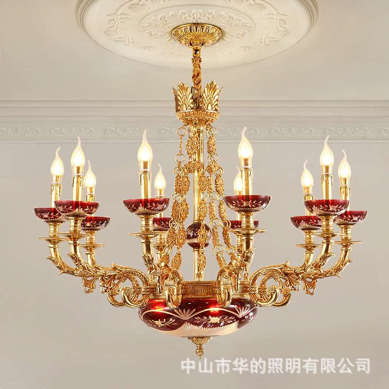 欧式铜灯法式中古全铜水晶吊灯客C厅餐厅楼梯网红别墅奢华宫廷浪