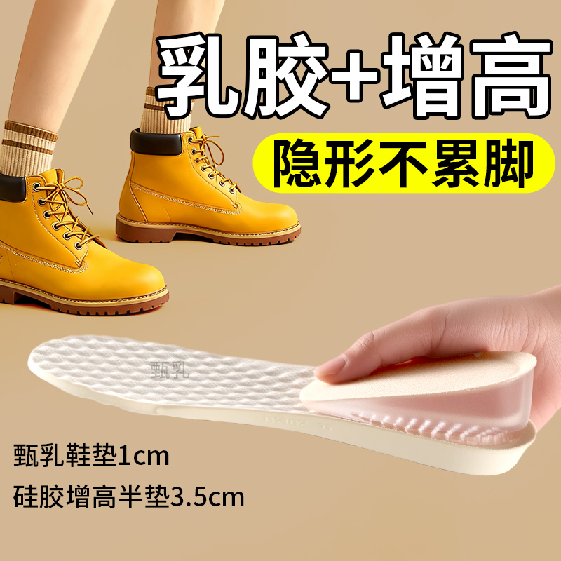 乳胶内增高鞋垫女款踩屎感加厚增高女士马丁靴子久站不累超软防痛
