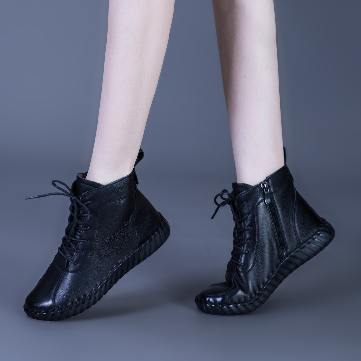 马丁靴女真皮短靴女款靴子2025新款真皮软底女士黑色牛皮妈妈鞋