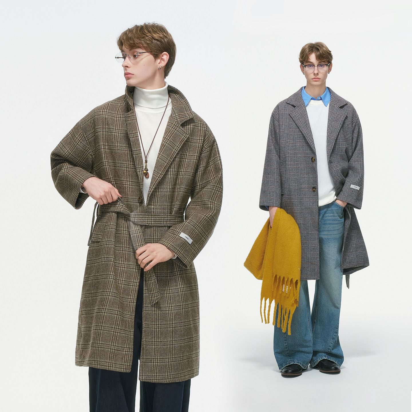Dream made 千鸟格羊毛大衣男款秋冬季毛呢外套长款过膝呢子风衣