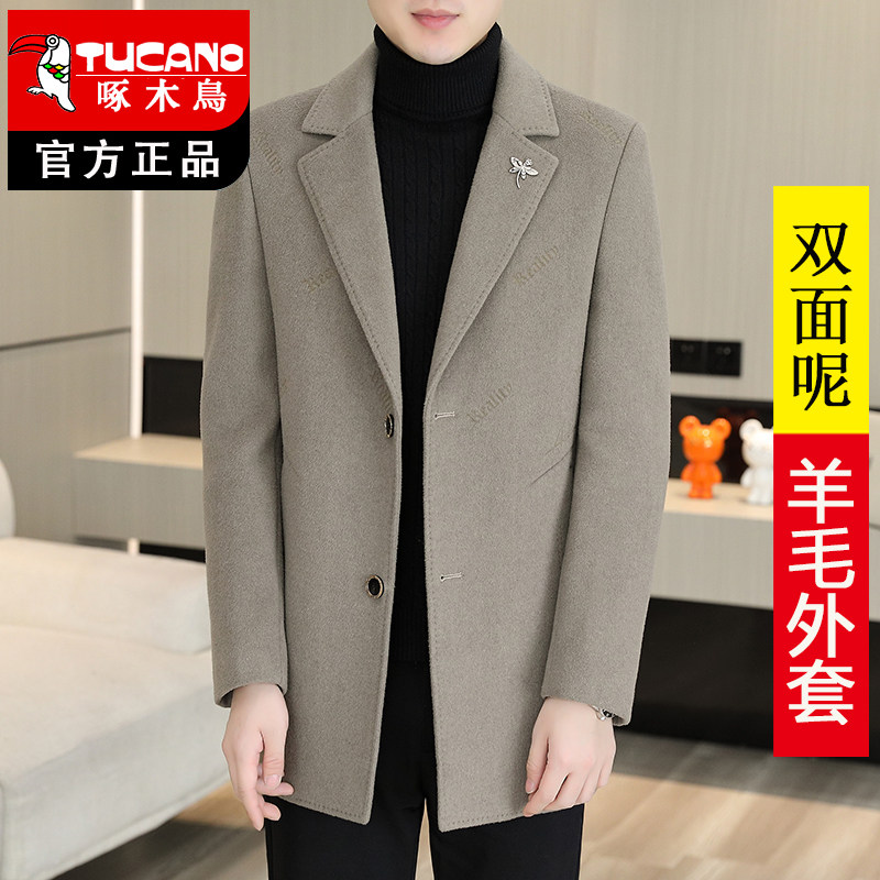 啄木鸟双面呢子大衣男士中长款羊毛外套秋冬装加厚羊毛呢大衣男款