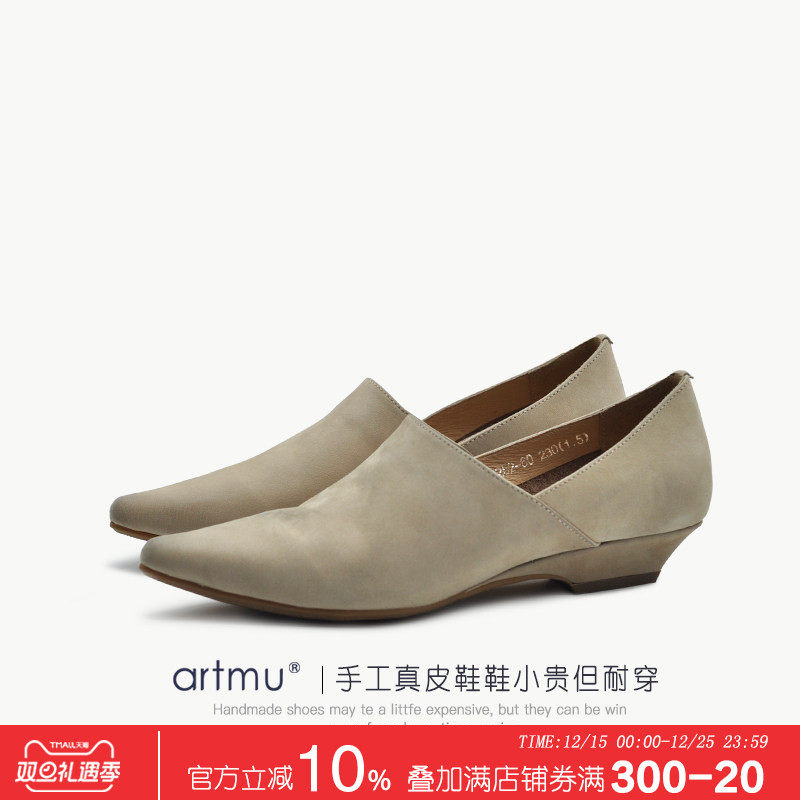 Artmu阿木尖头坡跟单鞋女黑色通勤女鞋粗跟真皮奶奶鞋2025新款