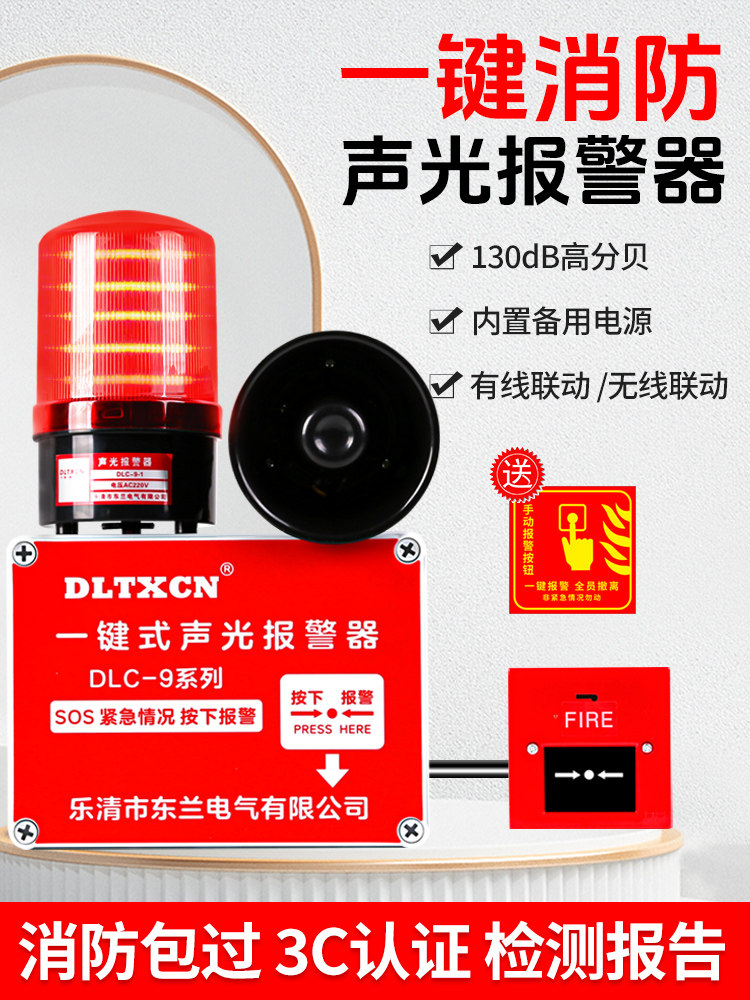 一键式消防报警器220V工业火灾声光一体联动装置24V高分贝喇叭12V