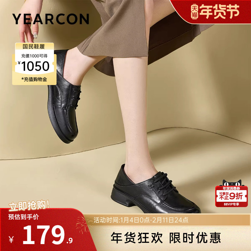 意尔康女鞋2025秋季真皮单鞋英伦风小皮鞋深口乐福鞋通勤工作鞋