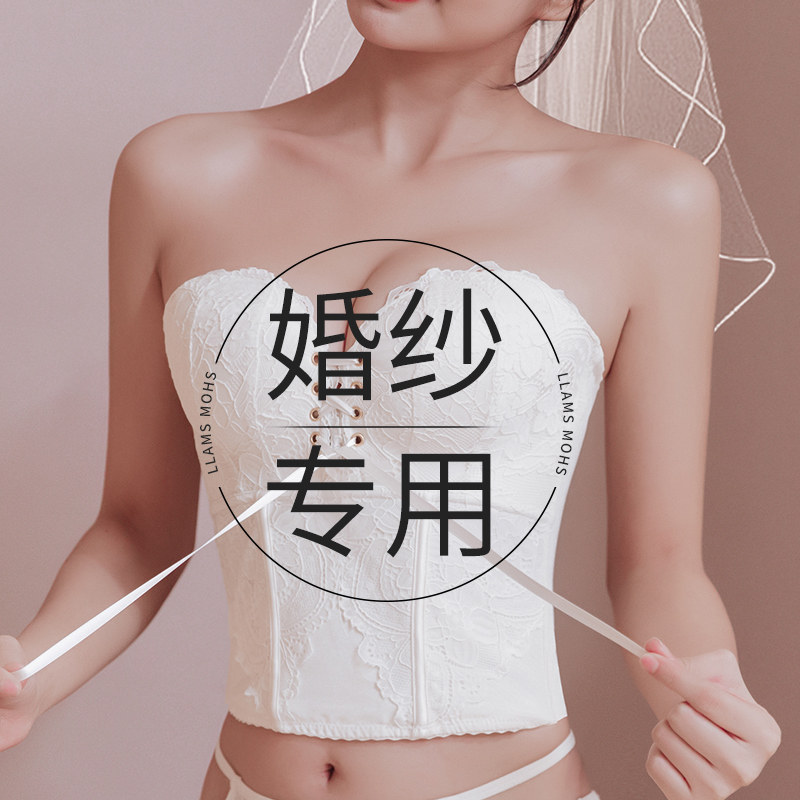 无肩带内衣婚纱专用白色小胸显大前扣聚拢防滑隐形抹胸罩新娘裹胸