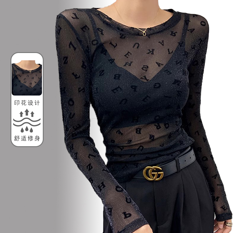 2023性感新款韩国透视薄纱衣修身百搭性感网纱打底衫女长袖体恤潮