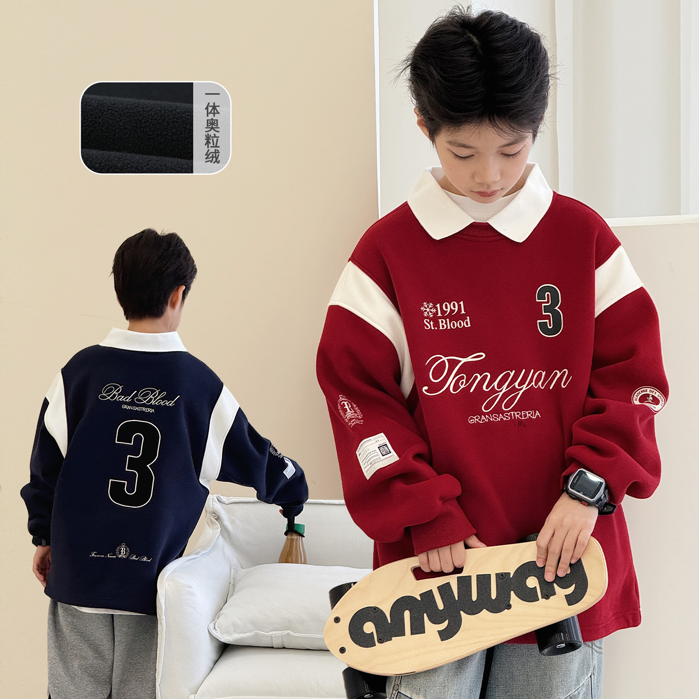 男童加绒卫衣2025冬装新款保暖中大童上衣加厚男孩外套儿童polo衫