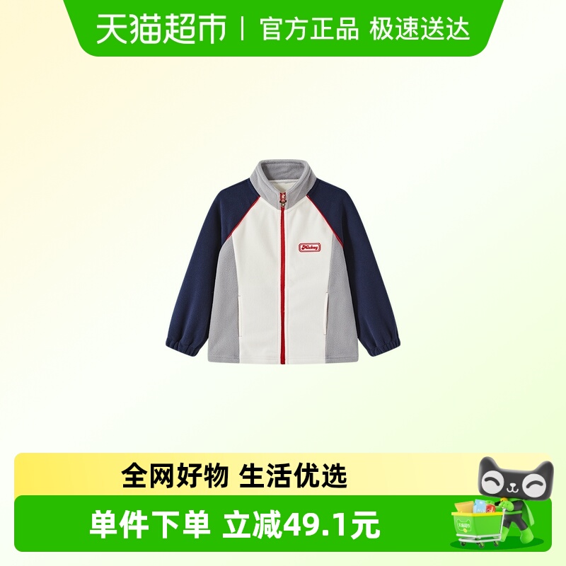 迪士尼男童摇粒绒外套2025春秋新款儿童洋气保暖加厚上衣男孩外套