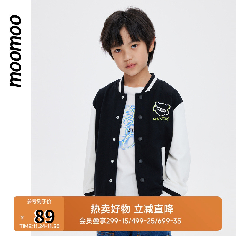 美特斯邦威童装男童秋经典简约撞色学院风印花中大童棒球男孩外套
