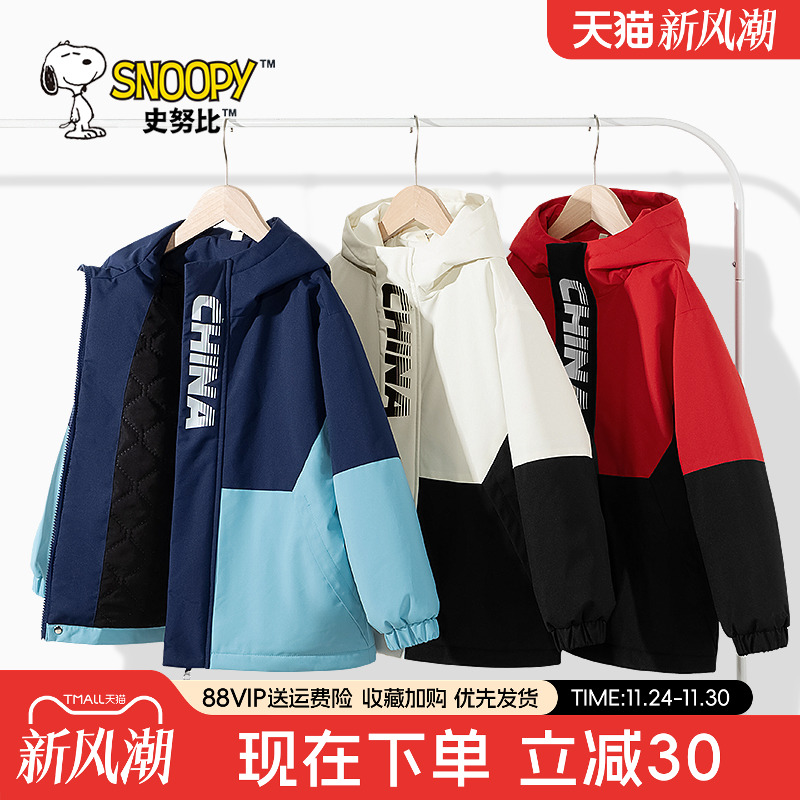 史努比男孩外套秋冬款2025新款冬装上衣儿童装撞色棉服男童冲锋衣