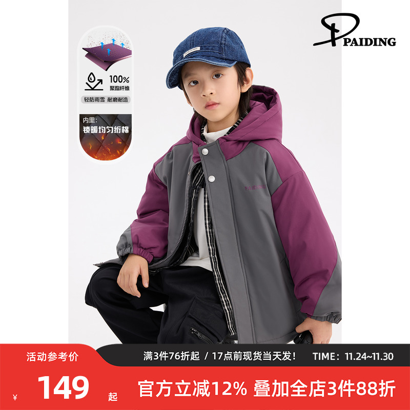 派町童装男童棉服2025新款儿童防水夹棉保暖外套秋冬装男孩外套潮