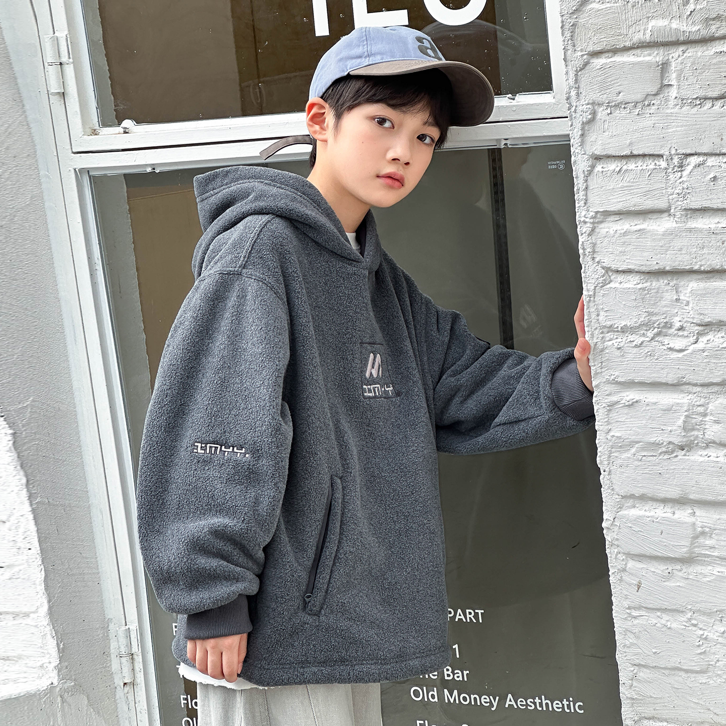 真维斯童装男孩外套秋冬款2025新款男童羊羔绒连帽卫衣儿童冬装厚