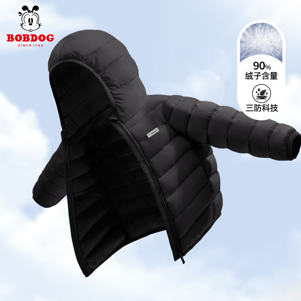 巴布豆儿童轻薄羽绒服秋冬三防2025新款男孩外套冬装黑色儿童衣服