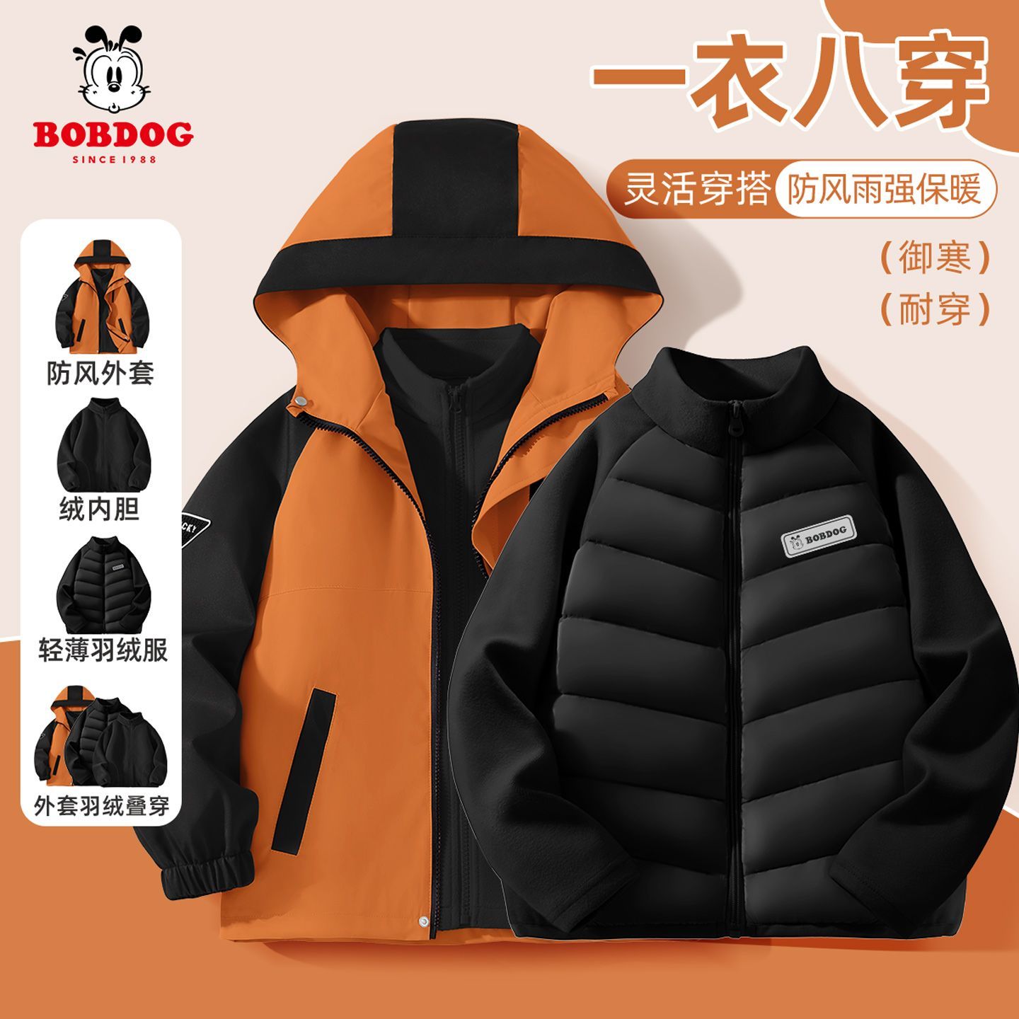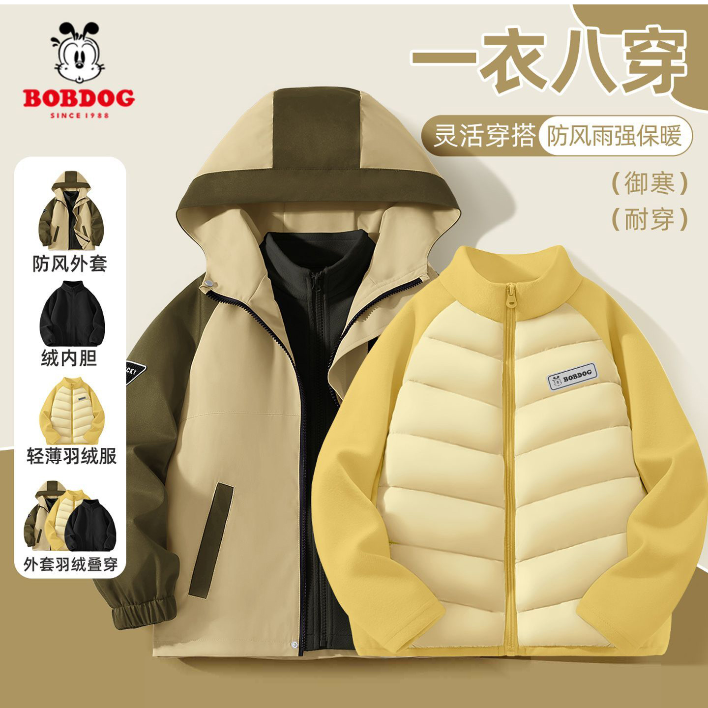 巴布豆男童户外衣冬装2025新款男孩外套防水户外儿童羽绒内胆保暖