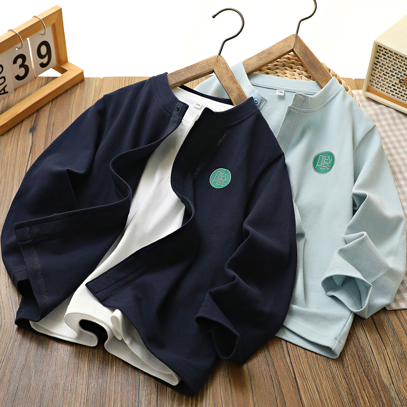左西童装男童牛仔衬衫外套2025新款秋季牛仔拼接秋装开衫男孩外套