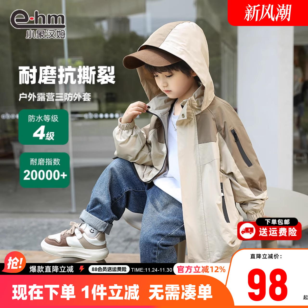 男童外套秋冬装25新款户外夹棉宝宝三合一儿童冲锋衣男孩冬季衣服