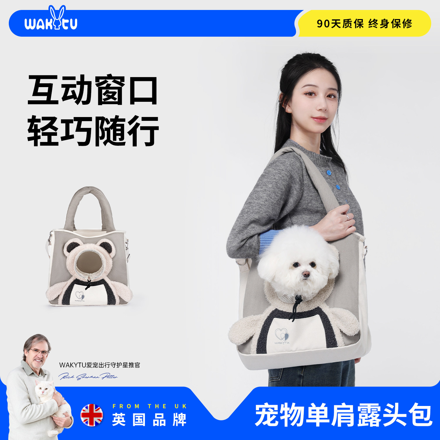 wakytu英国双肩背包猫包宠物包透气外出包秋冬便携狗包双肩手提包