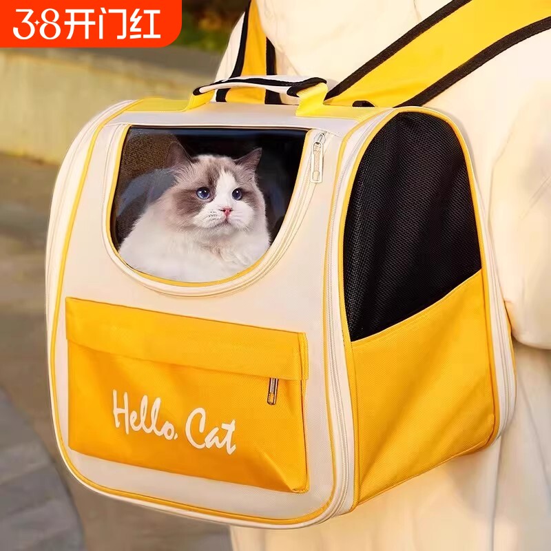 瓜洲牧猫包外出便携大容量宠物包双肩透明四季通用手提透气猫咪包