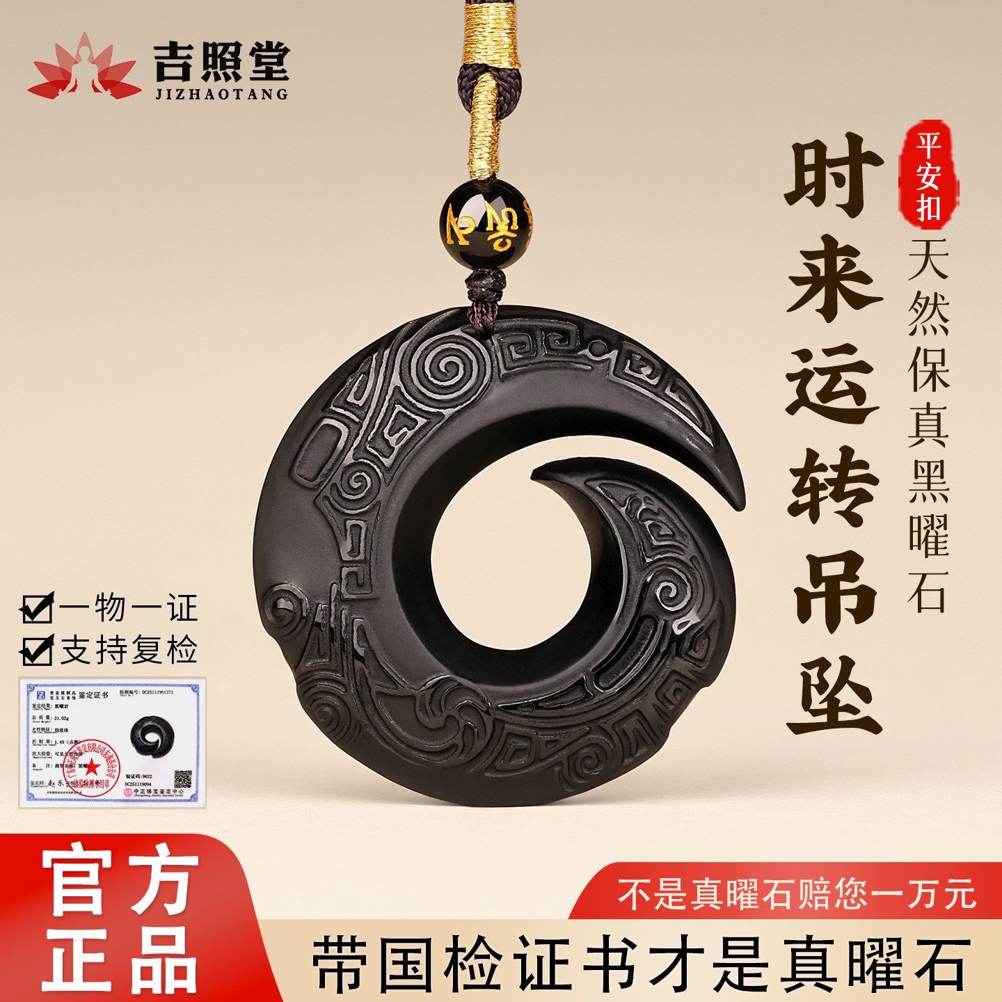 天然黑曜石吊坠时来运转男款冰种平安扣女士护身符正品官方旗舰店