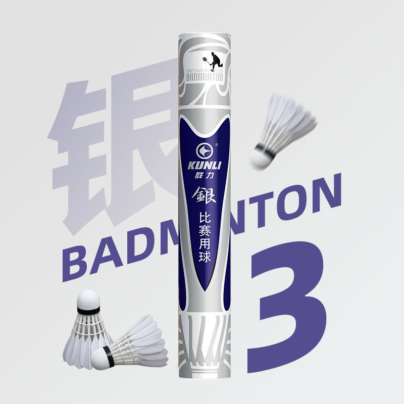 群力银-3羽毛球专业比赛甄选鸭毛12只装耐打防风羽毛球训练用球