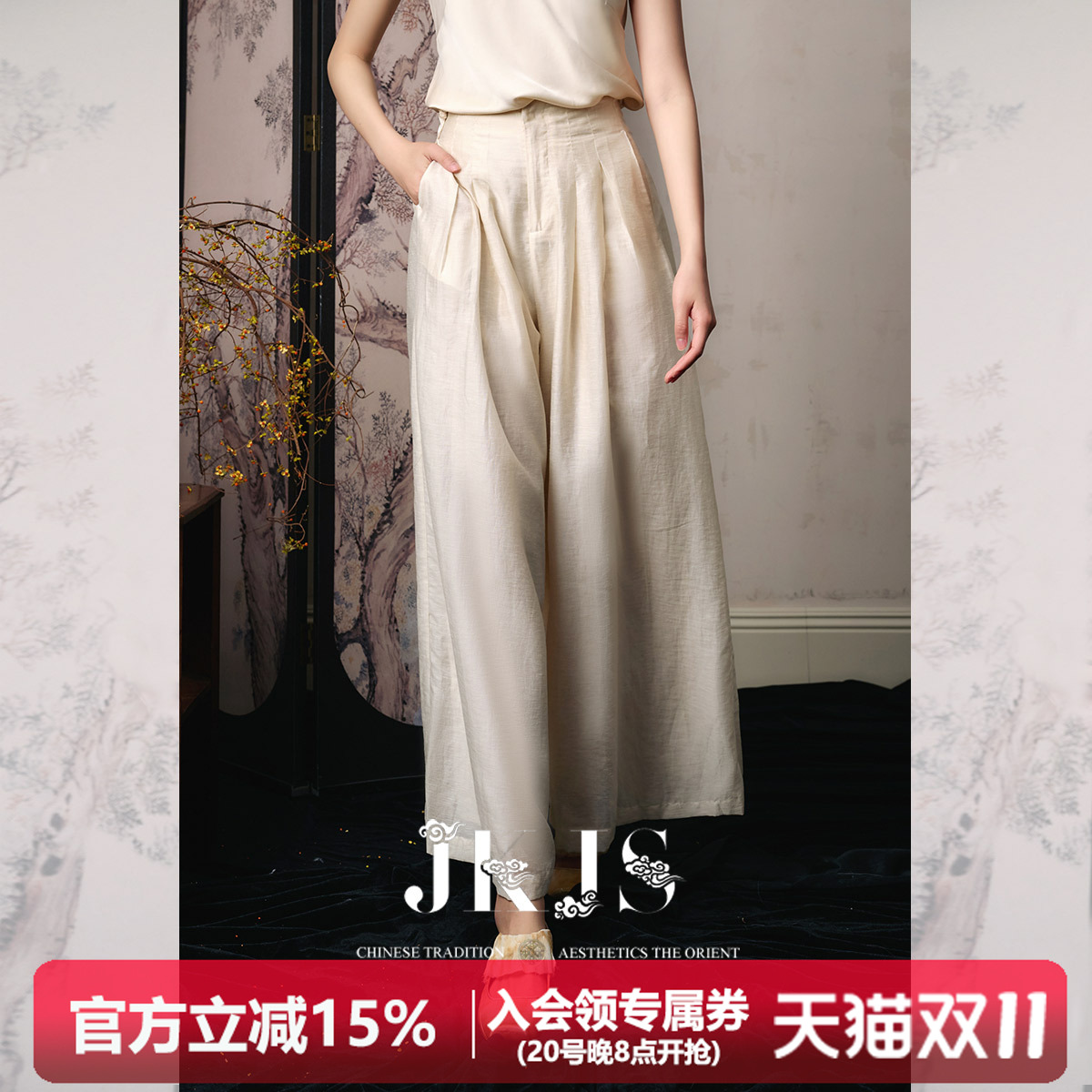 JKJS【轻氧裤】天丝亚麻宽松阔腿裤裙新中式搭配裤子宽松bf慵懒风
