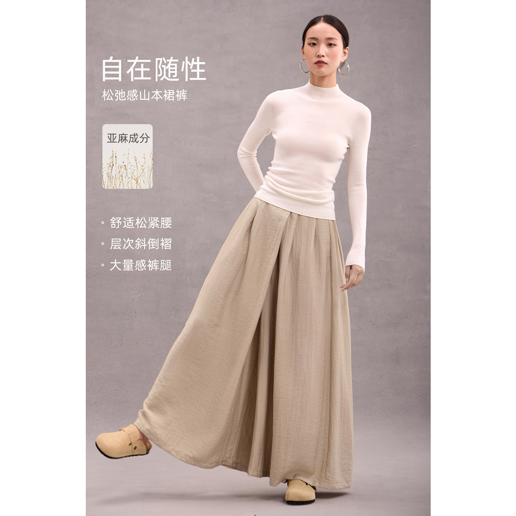 清爽飘逸纯色100支细苎麻长裤夏季新品宽松文艺凉爽阔腿裤裙裤女