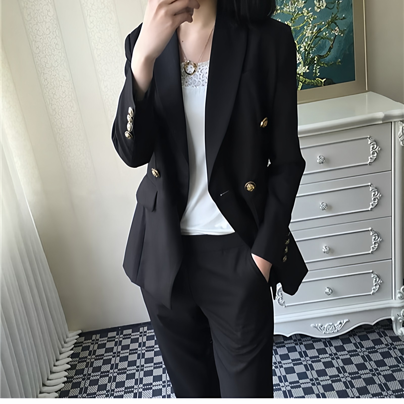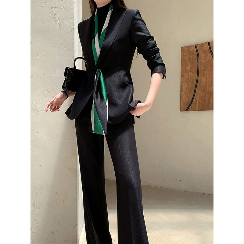 大码女装轻奢黑色修身西装长裤子套装2025秋季新款时尚职业两件套