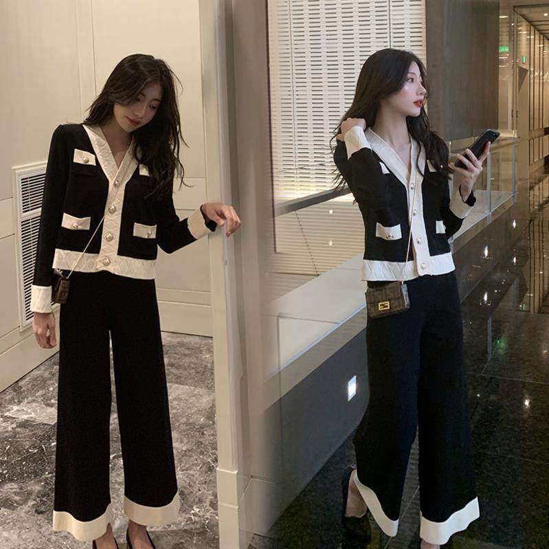 大码女装2025初秋新款小香风套装女胖mm时髦职业针织阔腿裤胖妹妹