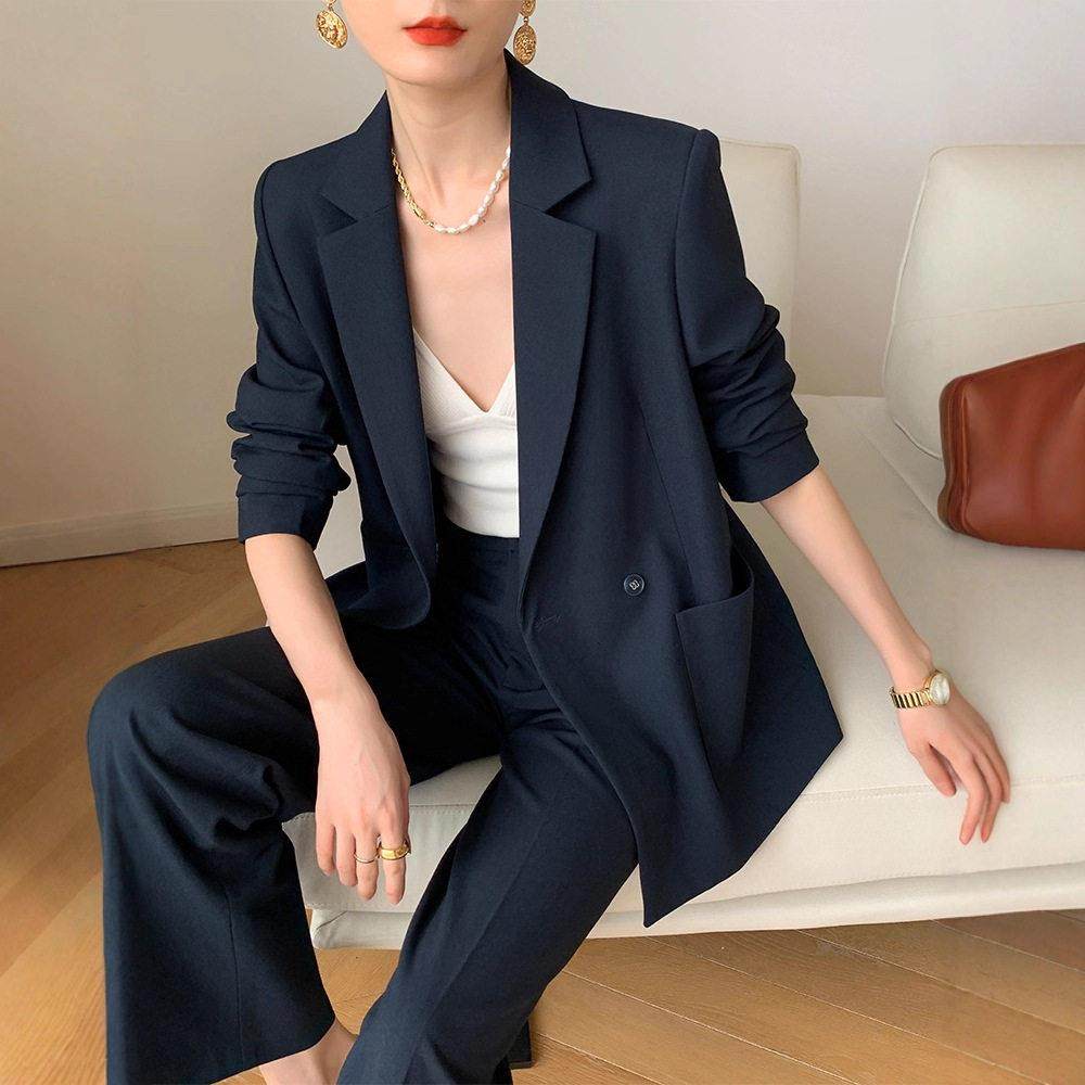 大码宽松职业西装套装女秋胖mm高级感炸街时尚气质干练西服两件套
