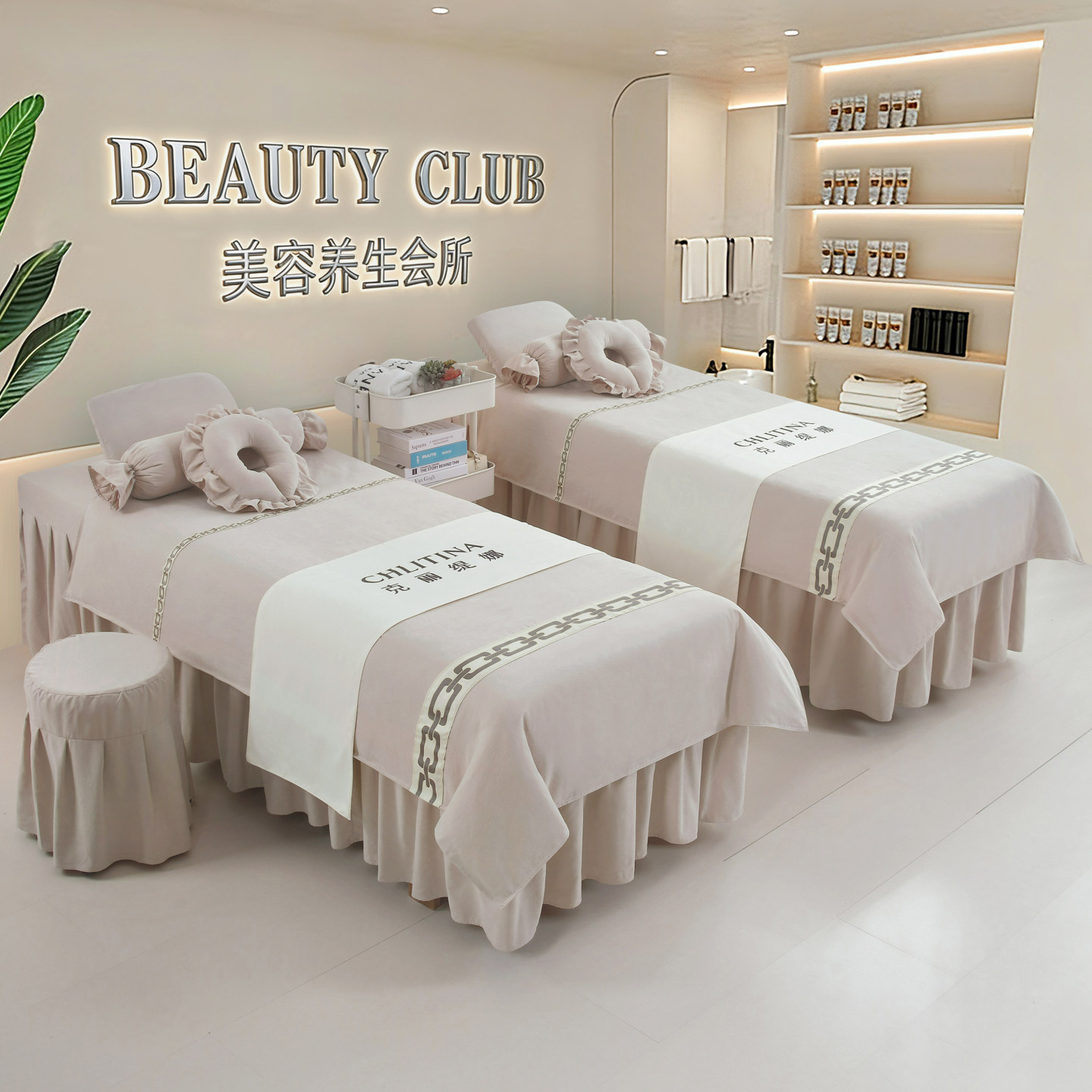 2025新款高端牛奶绒美容床罩四件套高级感美容院专用按摩床单头疗