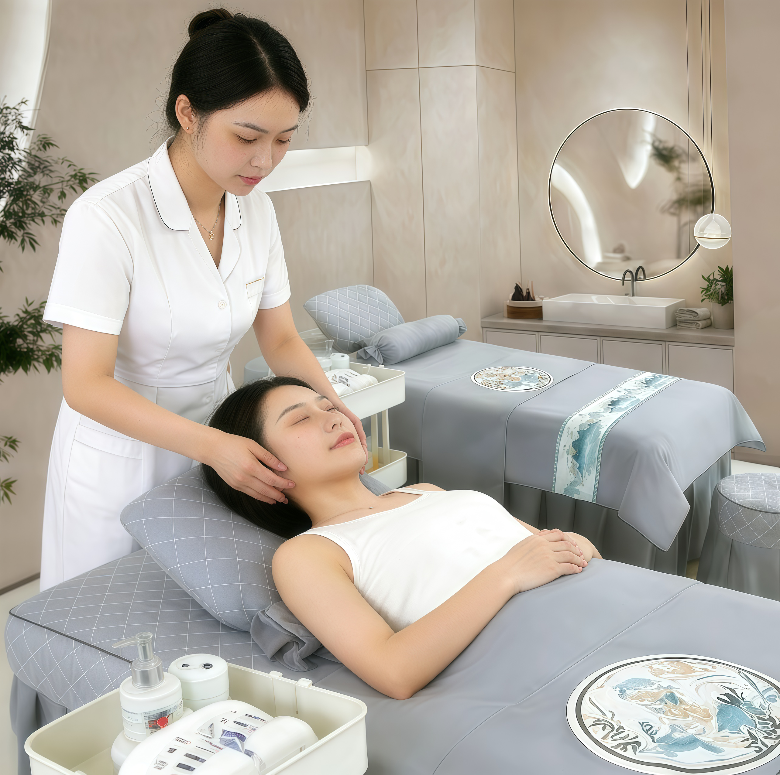 美容床罩四件套高端美容院专用网红按摩床北欧四季通用头疗高级感