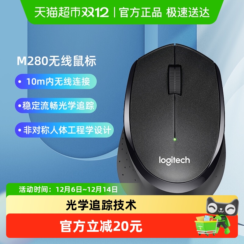 罗技M280无线鼠标便携办公家用电脑游戏USB接收器电池耐用滑鼠