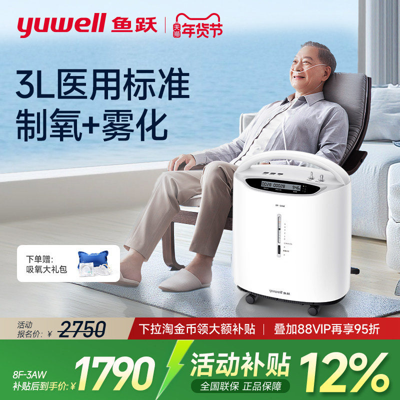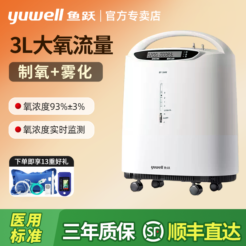 鱼跃制氧机家用吸氧老人医用3L升浓度90%小型家庭雾化氧气8F-3ZW