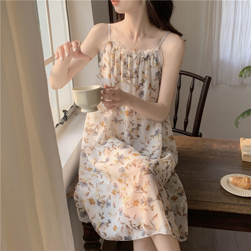 夏季薄款韩版吊带甜美棉绸睡裙薄款夏天女士宽松睡衣裙宽松连衣裙
