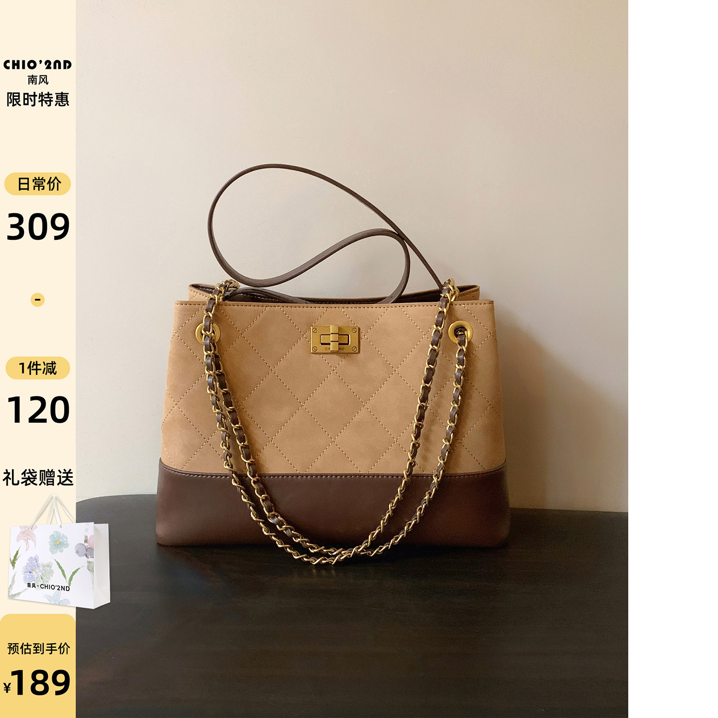 南风Chio2nd 托特包包女2025新款秋冬麂皮小众菱格链条单肩斜挎包